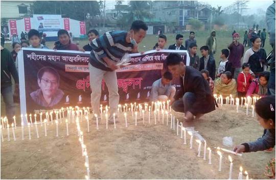 নিহত মিঠুন চাকমার স্মরণে রোববার খাগড়াছড়ি জেলা সদরে স্মরণসভা ও প্রদীপ প্রজ্জ্বলন করেছে ইউনাইটেড পিপল্স ডেমোক্রেটিক ফ্রন্ট(ইউপিডিএফ) খাগড়াছড়ি ইউনিট।