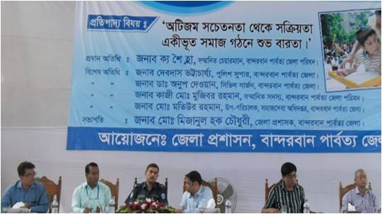 বুধবার বিশ্ব অটিজম সচেনতা দিবস উপলক্ষে বান্দরবানে আলোচান সভা,প্রতিবন্ধি সহায়ক উপকরণ বিতরণ