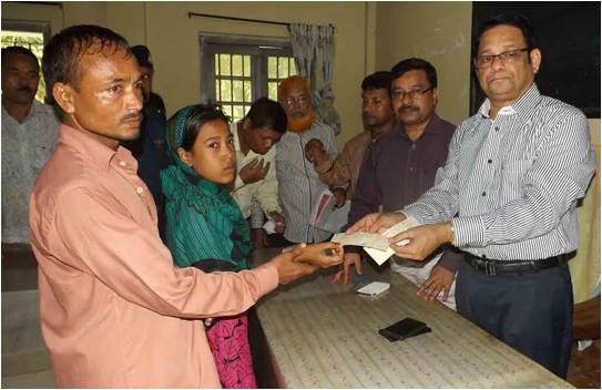 বান্দরবানের লামায় পাহাড় ধসে নিহতদের মাঝে বান্দরবান জেলা প্রশাসনের পক্ষ থেকে রোববার চেক বিতরণ করা হয়েছে।