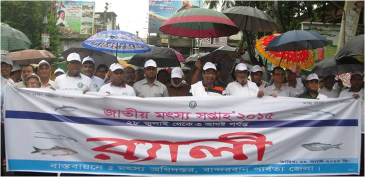 মঙ্গলবার বান্দরবানে জাতীয় মৎস্য সপ্তাহ উপলক্ষে র্যালী ও আলোচনা সভা অনুষ্ঠিত হয়েছে।