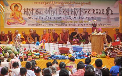 পার্বত্য চট্টগ্রাম তথা দেশের সর্ব বৃহৎ বৌদ্ধ মন্দির রাঙামাটির রাজ বন বিহারে বৃহস্পতিবার থেকে দুদিন ব্যাপী প্রধান ধর্মীয় উৎসব কঠিন চীবর দান শুরু হয়েছে।রাজ বন বিহারের প্রধান শ্রীমৎ প্রজ্ঞালংকার মহাস্থবির অহিসংসা,অমোহ,নিরোহংকারের সুদৃষ্টি রেখে এবং সকল প্রাণীর প্রতি মৈত্রী, করুনা ও মঙ্গল কামনা করে কঠিন চীবর দান উৎসব পালনের ধর্মোপদেশ দেন।