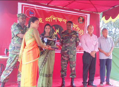 রাঙামাটির জুরাছড়িতে সেনা বাহিনীর উদ্যোগে রোববার বেকার প্রশিক্ষণ প্রাপ্ত নারীদের মাঝে সেলাই মেশিন বিতরণ করা হয়েছে।