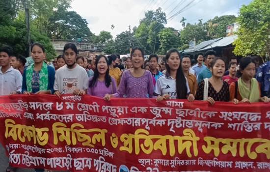 খাগড়াছড়ি সদর উপজেলায় সিঙিনালা নামক স্থানে ৮ম শ্রেণি পড়ুয়া এক আদিবাসী মারমা কিশোরী ধর্ষনের প্রতিবাদে জুম্ম ছাত্র জনতার ব্যানারে চলমান আন্দোলনে
