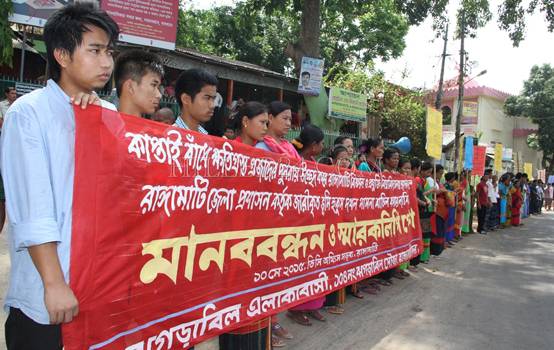 রাঙামাটিতে বিজ্ঞান ও প্রযুক্তি বিশ্ববিদ্যালয় স্থাপনের নামে ভূমি অধিগ্রহন বাতিলের দাবীতে মানববন্ধন
