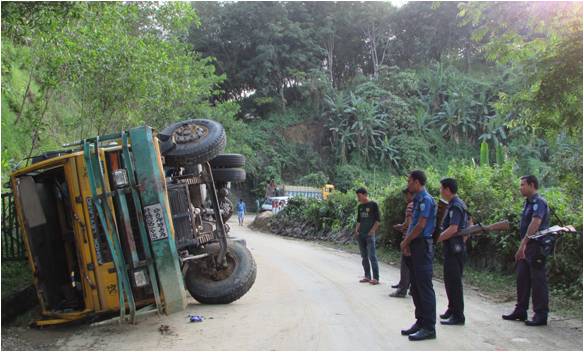 খাগড়াড়ি-ঢাকা সড়কে ট্রাক উল্টে গিয়ে যান চলাচল বন্ধ থাকার ৫ ঘন্টার পর স্বাভাবিক