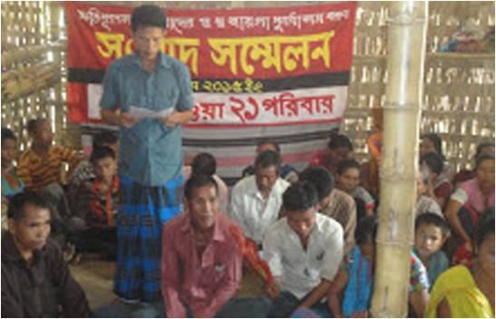 বাবুছড়ার নোয়াপাড়া গ্রামে সংবাদ সম্মেলনে কিরন চাকমা ক্ষতিগ্রস্থ ২১ পরিবারের পক্ষে লিখিত বক্তব্যে পাঠ করেন।