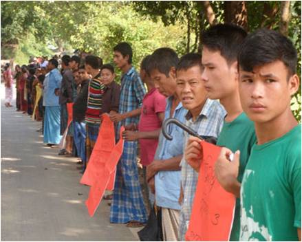 কতুকছড়ি বাজারের সামনেসোমবার বিকালে রাঙামাটি-খাগড়াছড়ি সড়কে ঘন্টাব্যাপী মানববন্ধন কর্মসূচিতে এলাকার জনগণ এবং স্থানীয় ব্যবসায়ীরা অংশ নেন।