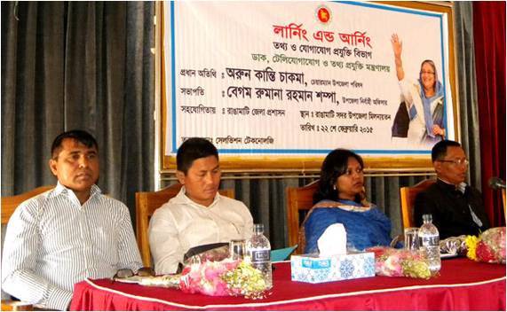 রোববার রাঙামাটিতে তথ্য ও যোগাযোগ প্রযুক্তি মন্ত্রণালয়ের  পক্ষকালব্যাপী লার্নিং অ্যান্ড আর্নিং প্রকল্পের উদ্বোধন করা হয়েছে।