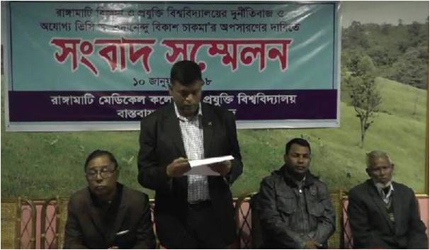 সংবাদ সন্মেলনে অভিযোগ করা হয়, বিশ্ব বিদ্যালয় মঞ্জুরী কমিশনের কোন নিয়ম নীতি না মেনে বর্তমান ভিসি তার স্বেচ্ছাচারিতার মাধ্যমে বিজ্ঞান ও প্রযুক্তি বিশ্ববিদ্যালয় পরিচালনা করছেন যে কারণে গত তিন বছরে এ বিশ্ববিদ্যালয় ক্রমেই অচল হয়ে পড়ছে। তিনি ভিসি ড. প্রদানেন্দু বিকাশ চাকমার অপসারণ করে একজন দক্ষ ভিসি নিয়োগ দেয়ার জন্য সরকারের কাছে দাবী জানানো হয়েছে।