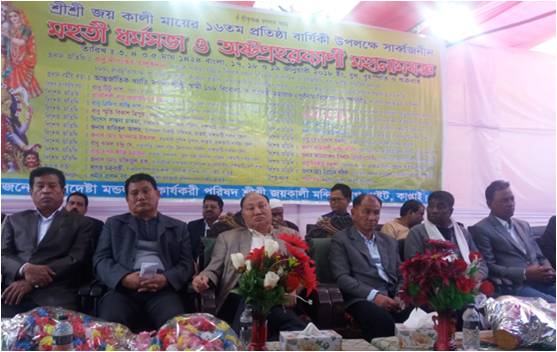 এর আগে মঙ্গল প্রদীপ প্রজ্জ্বোলনোর মাধম্যে ধর্মসভার শুভ সুচনা করেন জয়কালী মন্দিরের পুরোহিত পিন্টু চক্রবর্ত্তী।