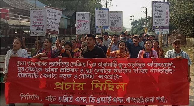 খাগড়াছড়ি-রাঙামাটি জেলায় সড়ক ও নৌপথ অবরোধ কর্মসূচী সফল করতে মঙ্গলবার খাগড়াছড়িতে মিছিল করেছে বৃহত্তর পার্বত্য চট্টগ্রাম পাহাড়ি ছাত্র পরিষদ (পিসিপি)সহ তিন সংগঠন।